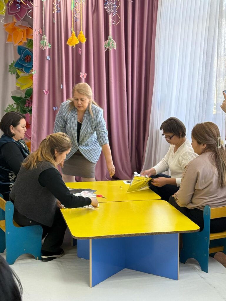 «Koshbasshy balabaqsha» жобасы аясында ұйымдастырылған «Бейімделу кезеңіндегі эмоциональды стрессті жеңілдетуге арналған ойындар» тақырыбы негізінде дефектолог-логопед М.А.Салимбаева аудандық семинарда іс-тәжірибесімен бөлісті.